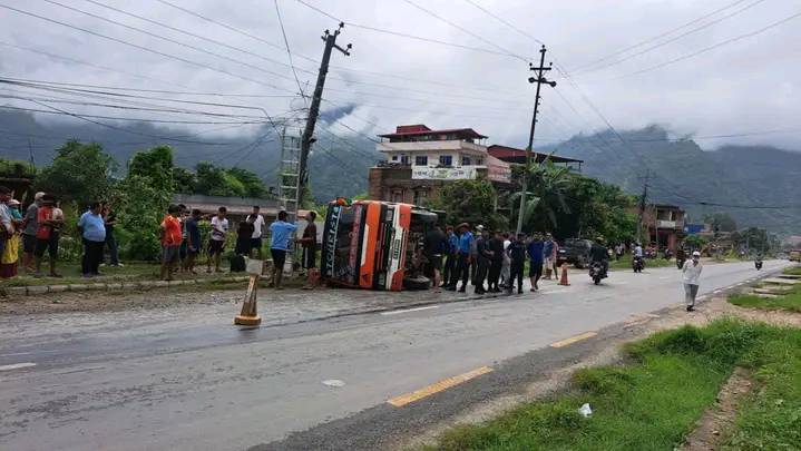 लमजुङबाट नारायणगढतर्फ जाँदै गरेको ग१ज ८२९४ नम्बरको विद्युतीय माइक्रोबस र दमौलीबाट मुग्लिनतर्फ जाँदै गरेको बा४ख ४४७० नम्बरको मिनिबस अनियन्त्रित भई सडकमा पल्टिएका थिए । रासस