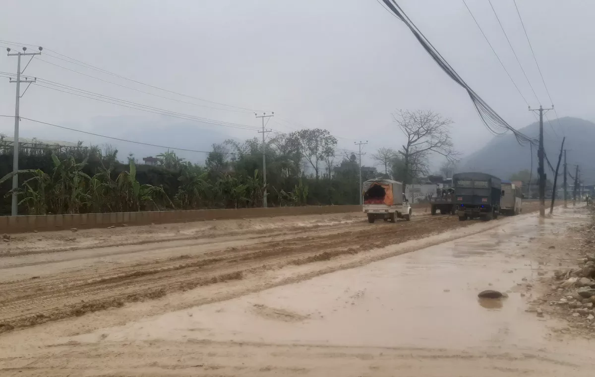 दमौली (तनहुँ), १६ चैत । तनहुँको भिमाद घर भई दमौली बस्दै आउनुभएका राजेन्द्र अर्याललाई खैरेनीटारदेखि दमौली आइपुग्न तीन घण्टा लाग्यो । दुई दिनदेखि परेको झरीका कारण राजमार्ग हिलाम्य भएपछि २२ किलोमिटर दूरी छिचोल्न उहाँलाई तीन घण्टा लागेको हो ।