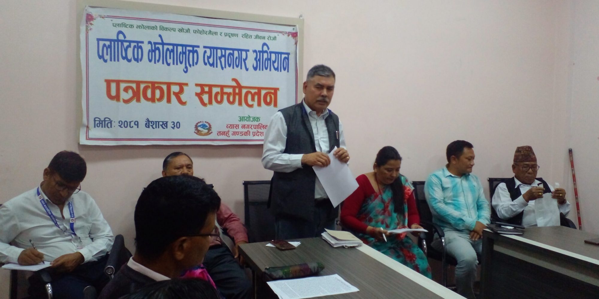 व्यापारीलाई प्लास्टिक झोलाको सट्टा वैकल्पिक झोलामात्र बिक्रीवितरण गरी प्लास्टिक झोलामुक्त व्यास नगर बनाउने अभियानलाई सफल बनाउन निमित्त प्रशासकीय अधिकृत केदार आचार्यले आग्रह गरे ।