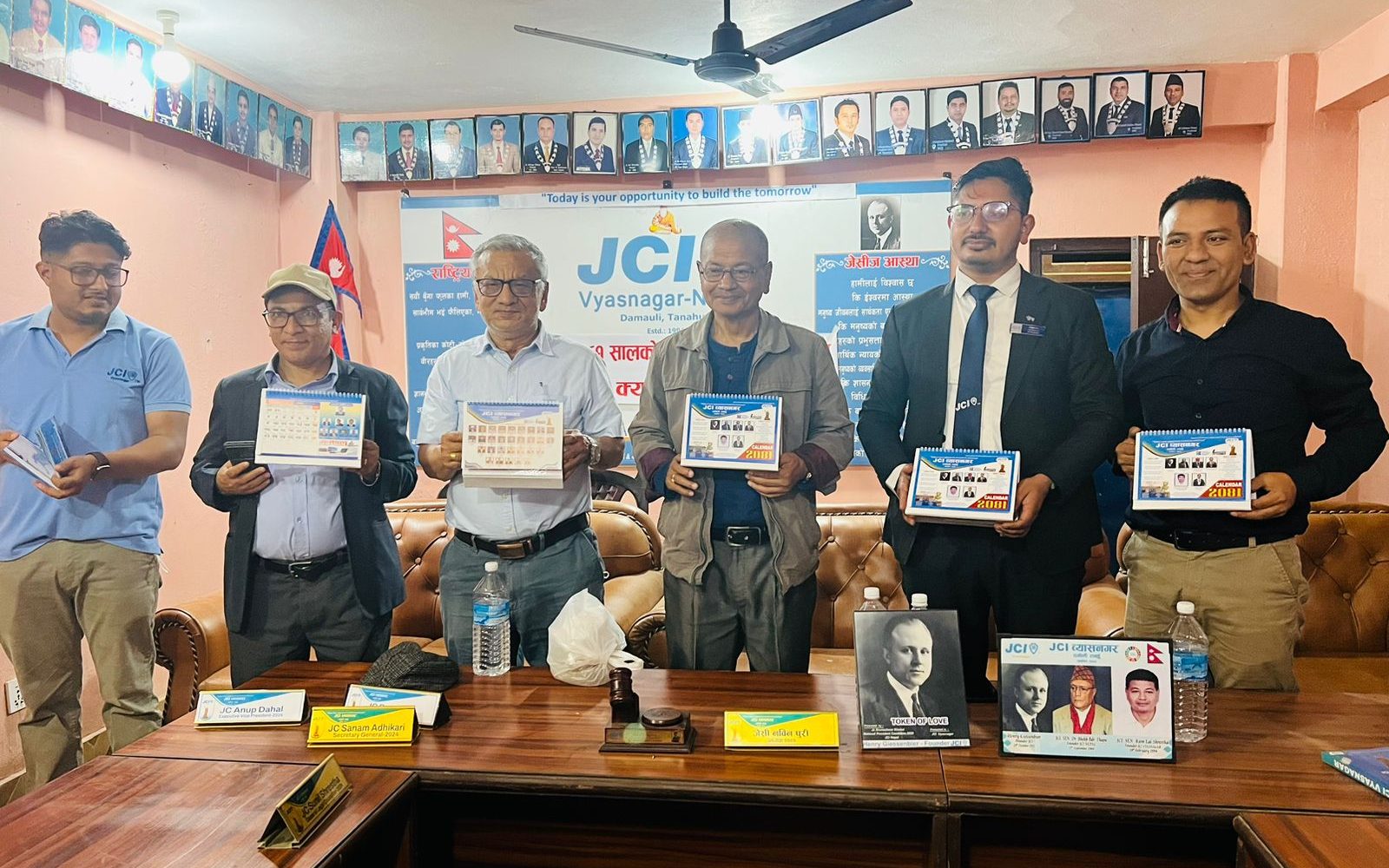 दमौली -जिल्लामा क्रियाशिल सामाजिक संस्था जेसीआइ व्यास नगरले नयाँ बर्षको शुभकामना आदान प्रदान तथा भित्ते पात्रो विमोचन गरेको छ । आइतबार नयाँ वर्षको शुभकामना तथा विमोचन कार्यक्रमको आयोजना गरि २०८१ सालको भित्ते पात्रो विमोचन गरेको हो ।