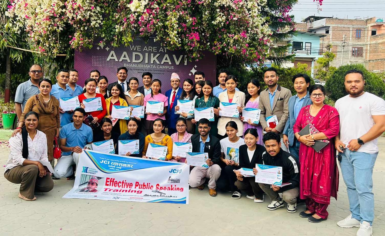 जेसिआई व्यास नगरका अध्यक्ष नविन पुरीको सभापतित्वमा सम्पन्न कार्यक्रममा आदिकवि भानुभक्त क्याम्पसका निमित्त क्याम्पस प्रमुख डाक्टर रामकुमार अधिकारी, सहायक प्राध्यापक नारायणी अधिकारी, पत्रकार अञ्जना तिमिल्सेना लगायतले कुशल वक्ता हुनका लागि प्रभावकारी सिपको आवश्यकता पर्ने औल्याएका थिए ।