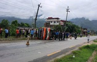 आँबुखैरेनीमा बस दुर्घटना हुँदा १३ जना घाइते