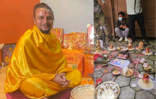 प्रधानमन्त्रीसहित नेताहरुको तस्बिर राखेर यमराजको पूजा गर्दैगर्दा पक्राउ परे पुष्कर खतिवडा